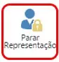 Indicando que a sua visualização daquela página é como a visualização da pessoa, que você está representando. E suas ações naquela página serão registradas como sendo da pessoa representada. Navegue como se fosse a pessoa e, para parar a representação, vá novamente em Configurações do PWA e em Atuar como Representante. Clique no botão Parar Representação: