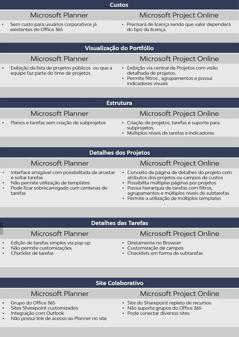 Neste artigo, faremos um comparativo entre as funcionalidades do Microsoft Planner e o Microsoft Project Online que são ferramentas utilizadas pelas empresas para controlar os seus projetos.